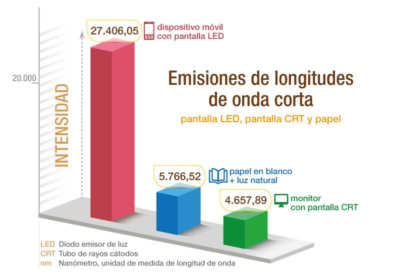 Estos nuevos dispositivos emiten 5 veces más luz de onda corta que los anteriores. Esta es la razón por la que resulta imprescindible protegerse del exceso de este tipo de luz